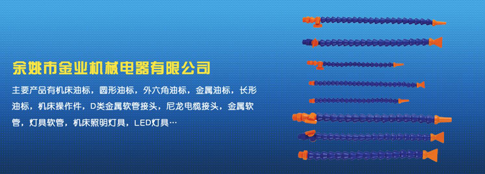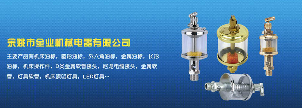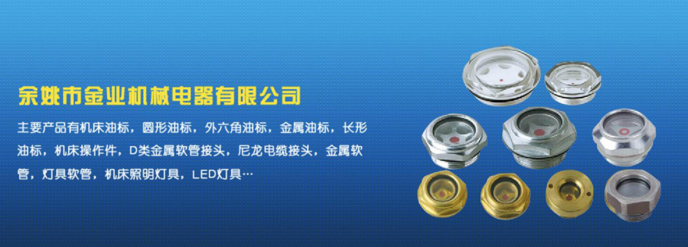 余姚市金業(yè)機(jī)械電器有限公司主要產(chǎn)品有機(jī)床油杯,圓形油標(biāo),外六角油標(biāo),金屬油標(biāo),長(zhǎng)形油標(biāo),機(jī)床操作件,D類金屬軟管接頭,尼龍電纜接頭,金屬軟管,燈具軟管,機(jī)床照明燈具,LED燈具,DGT型線路軟管防護(hù)套,TL型鋼制電纜手軌,電纜尼龍拖鏈,可調(diào)塑鋼冷卻管等產(chǎn)品,規(guī)格齊全,全部自制。望國(guó)內(nèi)外客戶前來(lái)考察:共同發(fā)展…